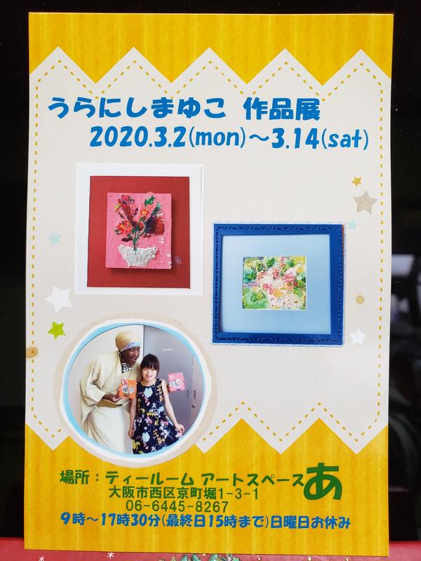 クローバーの会のメンバー浦西真由子さんの作品展が2020年3月2日~3月14日まで大阪市西区京町堀の「ティールーム アートスペース 」にて開催されます。