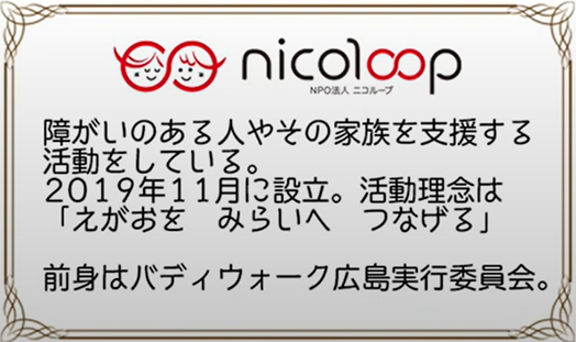 広島で障がい者の支援を行う「NPO法人 nicoloop」ではダウン症児者の写真展の動画を公開しています。