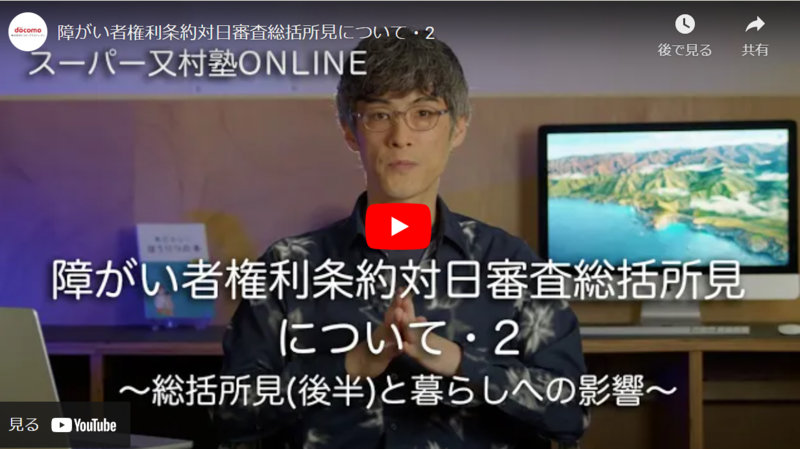セミナー情報 障がい者権利条約対日審査総括所見について・1 ~スーパー又村塾オンライン