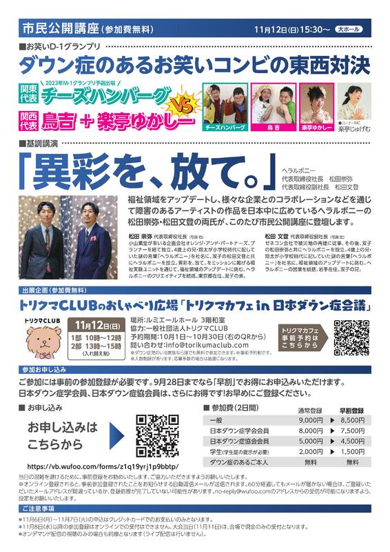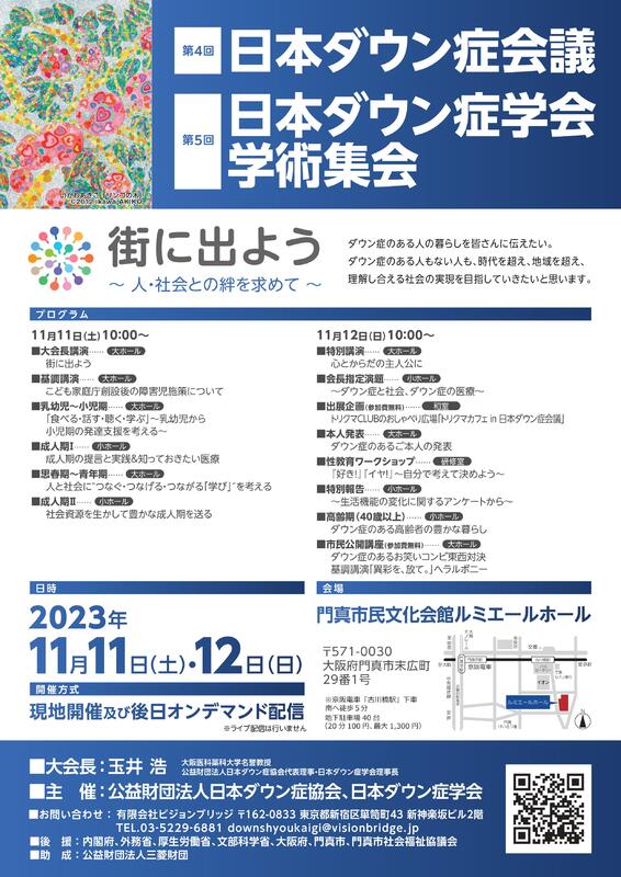 公益財団法人日本ダウン症協会と、日本ダウン症学会では、11月11日・12日に「第4回日本ダウン症会議・第5回日本ダウン症学会学術集会」を開催します。