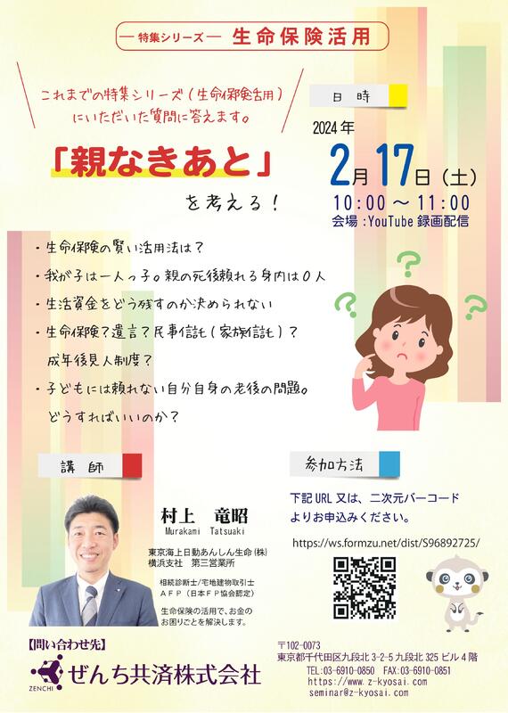 ぜんち共済株式会社主催の無料オンラインセミナーです。
