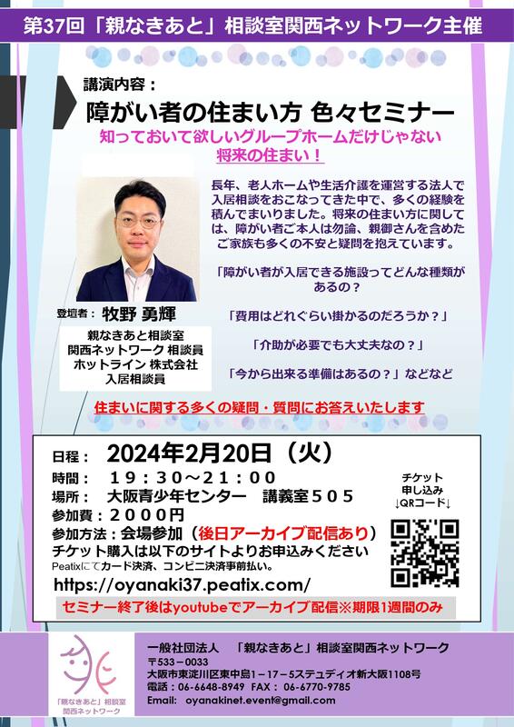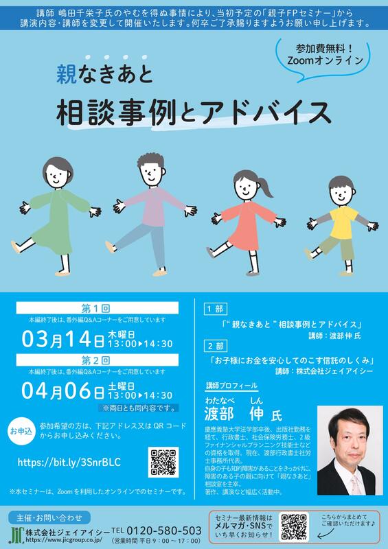セミナー情報 『親なきあと』でもお金を守るために大切なこと ~「親なきあと」相談室 関西ネットワーク
