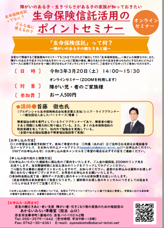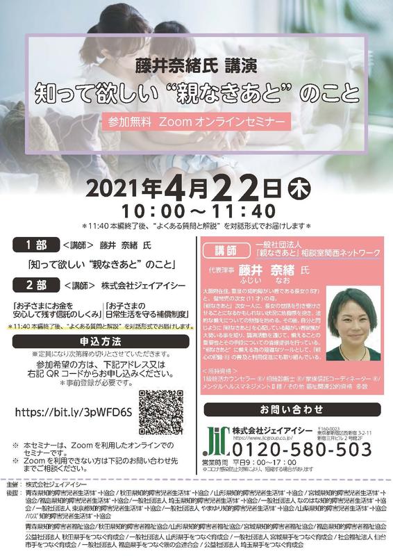 セミナー情報 オンライン『知って欲しい”親なきあと”のこと』