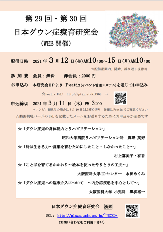 セミナー情報 日本ダウン症療育研究会第29回・30回web開催