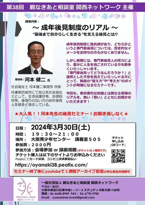 「親なきあと相談室」関西ネットワークでは第38回「親なきあと」相談室 関西ネットワーク「成年後見制度のリアル」」を開催します。