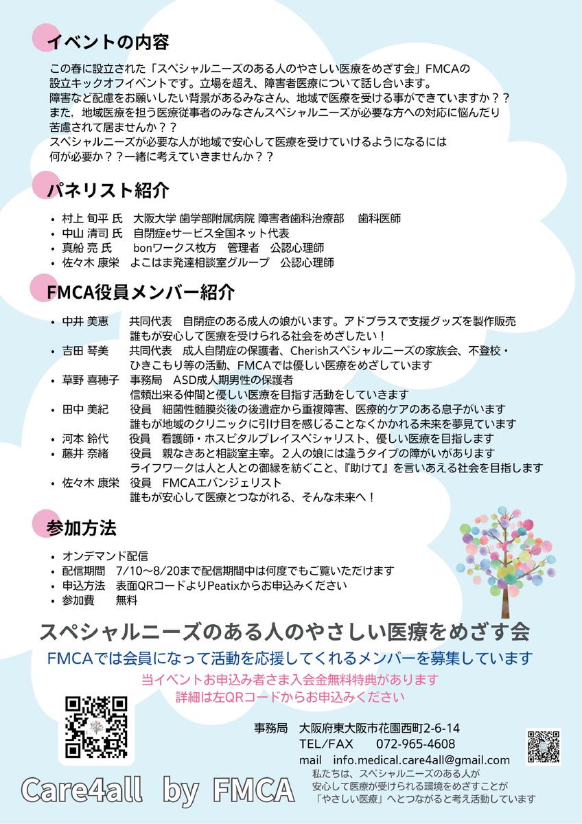 オンライン配信 FMCA 「スペシャルニーズのある人のやさしい医療をめざす会」設立記念キックオフイベント