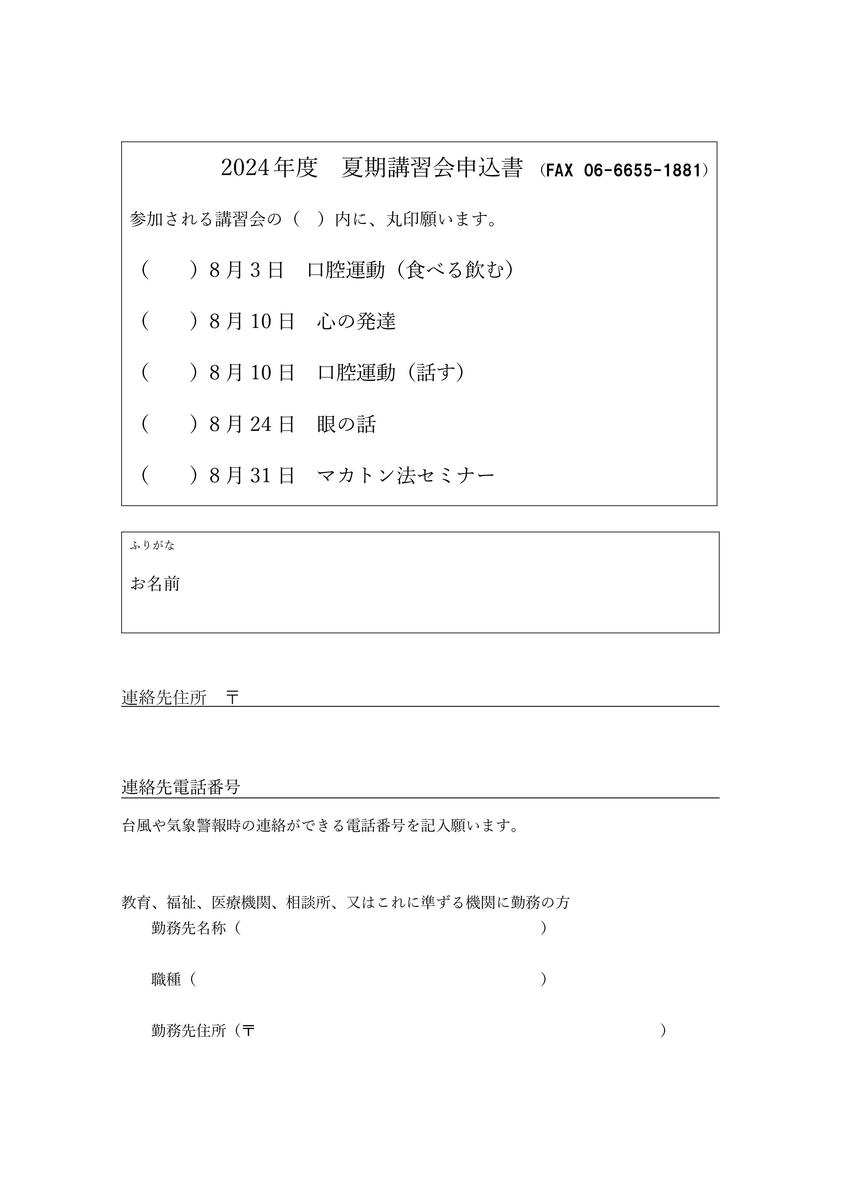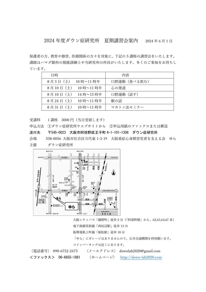 ダウン症研究所では、下記の通り夏期講習会を開催します。