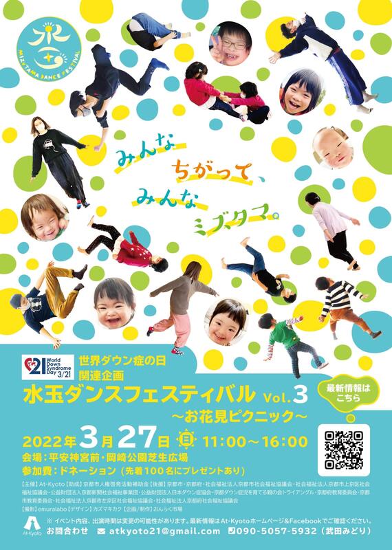 Ay-kyotoでは2022年3月27日(日)にダウン症の日関連行事として「水玉ダンスフェスティバル vol.3」を開催します。
