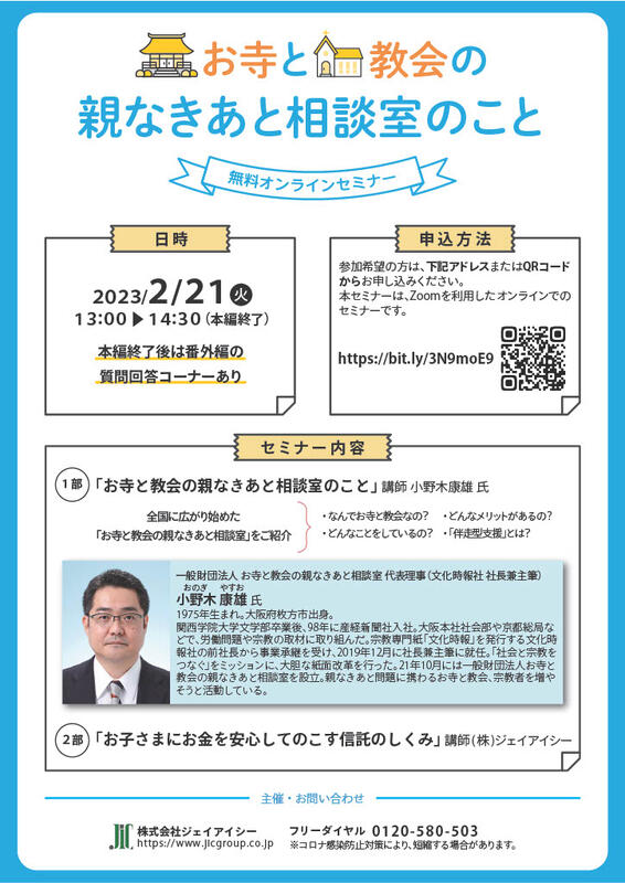 セミナー情報 お寺と教会の親なきあと相談室のこと(講師:小野木康雄氏)