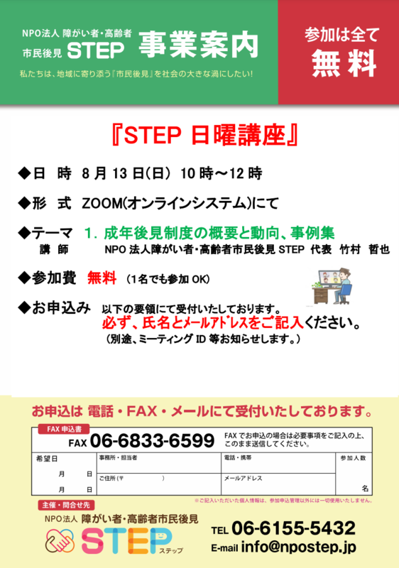 主催:NPO法人 障がい者・高齢者市民後見 STEP