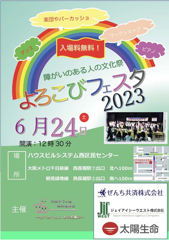 今年も、大阪ダウン症親の連絡会[DS大阪]が主催する"障がい者の文化祭"「よろこびフェスタ」が開催されます。ダウン症児・者を中心に、ダンスや音楽演奏などのパフォーマンスが繰り広げられます。今年は、新型コロナウイルス感染症がひと段落とは言え、まだまだ密になるのは心配なことも有り、規模を縮小しての開催となりますが、来場者が参加できるダンスコーナーも有ります。ぜひご家族でご参加ください。