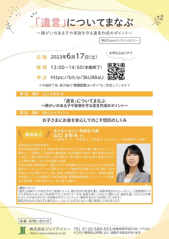 セミナー情報 「遺言」についてまなぶ~障がいのある子や家族を守る遺言作成のポイント