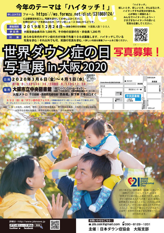 日本ダウン症協会(JDS)大阪支部主催の「世界ダウン症の日写真展」の募集が2019年12月24日に開始されるよ!