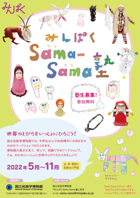 ※参加ご希望の方は、以下のメールアドレスに、参加される方と付き添いの方のお名前を書いてメールをお送りください。 sama-sama@minpaku.ac.jp
