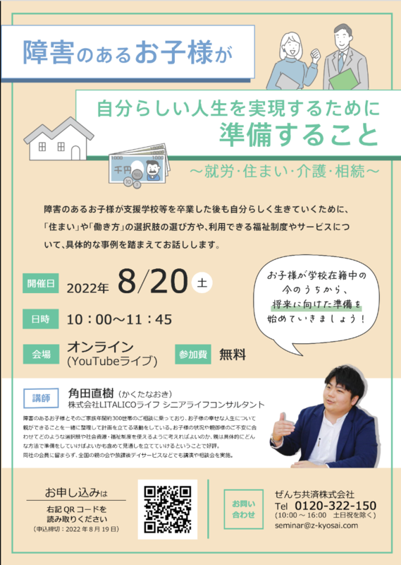 セミナー情報 障害のあるお子様が自分らしい人生を実現するために準備すること ~就労・住まい・介護・相続~