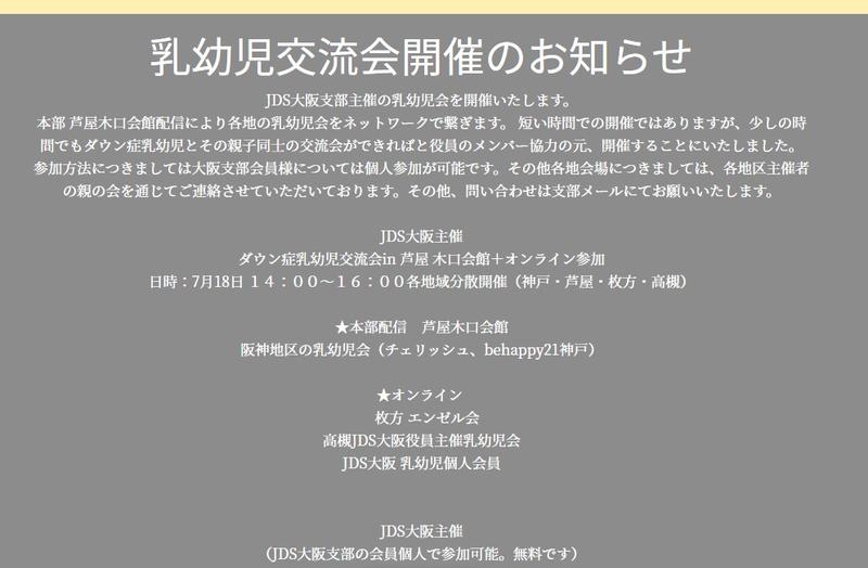日本ダウン症協会大阪支部では2021年7月18日(日)にダウン症の乳幼児を対象とした交流会を開催します。