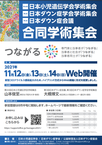 第3回日本ダウン症会議、第2回日本ダウン症学会学術集会、第44回日本小児遺伝学会学術集会を合同で行うもので、全てweb会議で開催されます。