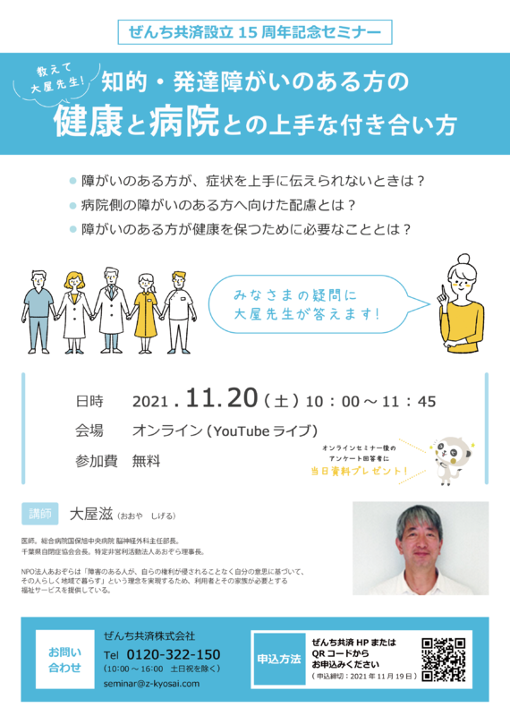 セミナー情報 教えて、大屋先生! 知的・発達障がいのある方の 健康 と 病院との上手な付き合い方