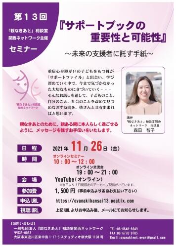 セミナー情報 第13回「親なきあと」相談室関西ネットワークオンラインセミナー「サポートブックの重要性と可能性」~未来の支援者に託す手紙~