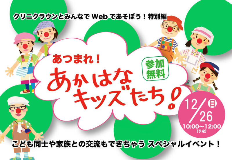 イベント情報 12月開催!「あつまれ!あかはなキッズたち!」クリニクラウンとみんなでWebであそぼう!特別編