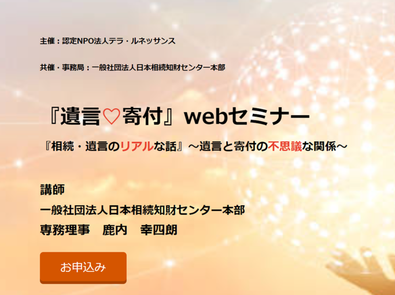 セミナー情報 遺言寄付Webセミナー 『相続・遺言のリアルな話』〜遺言と寄付の不思議な関係〜