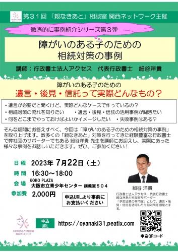 第31回 親なきあと 相談室 関西ネットワーク「リアルセミナー 徹底的に事例紹介シリーズ第3弾 障がいのある子のための 相続対策の事例」
